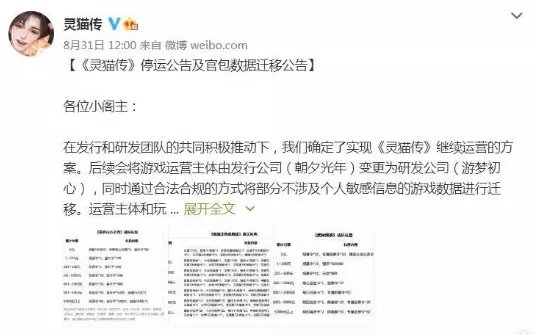 在玩家的热情和官方的努力下,游戏在临近关服前迎来了转机,《灵猫传》可以将数据从朝夕光年服顺利转移到新的自营服务器。